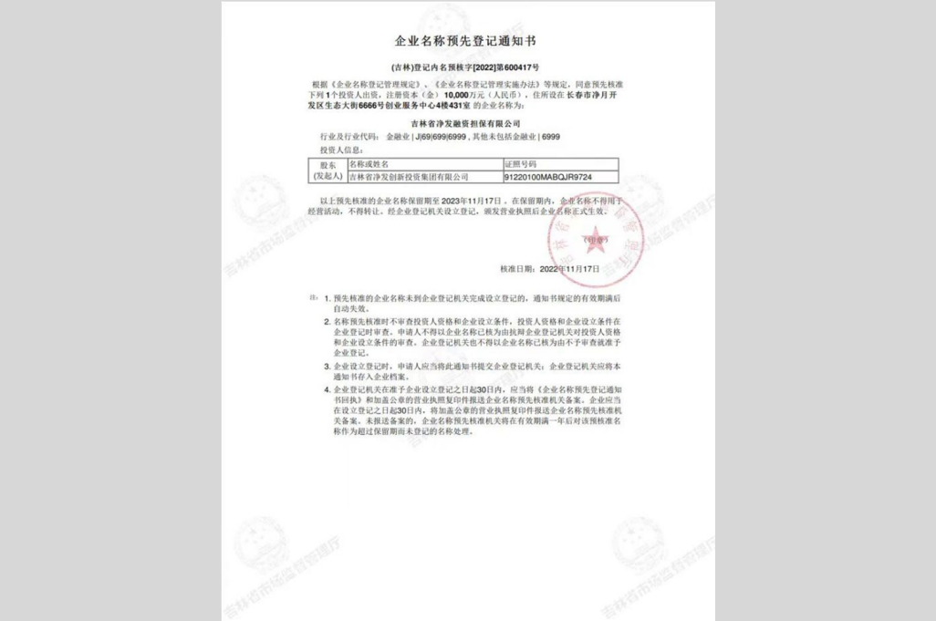 吉林省凈發(fā)融資擔(dān)保有限公司