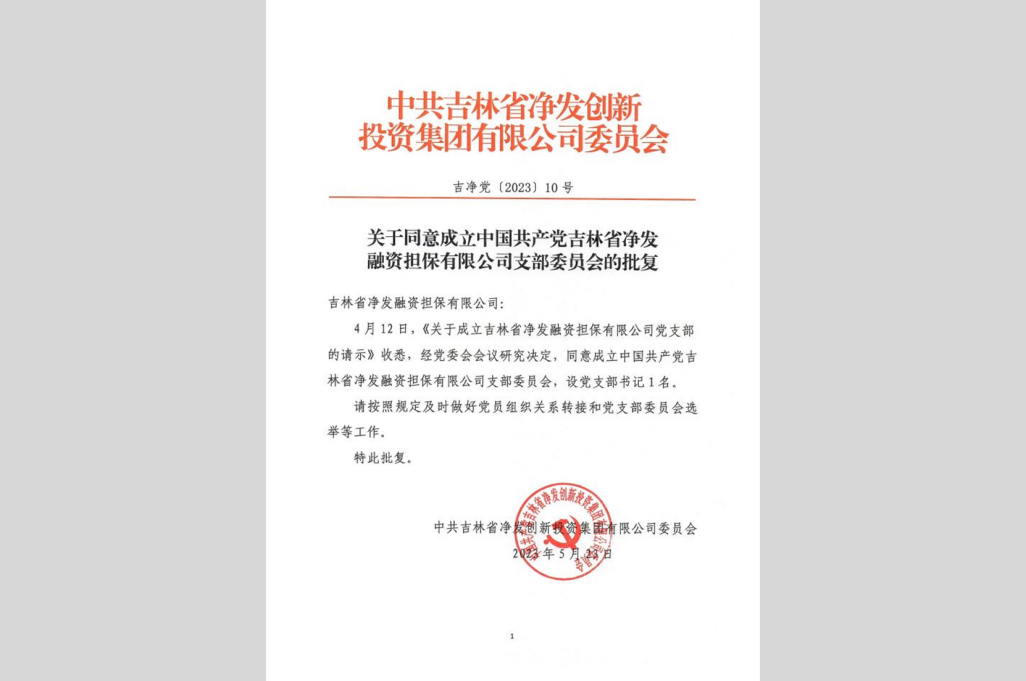 凈發(fā)擔(dān)保于2022年11月17日完成公司核名,2023年3月16日通過吉林省地方金融監(jiān)督管理局評(píng)審并獲得了融資擔(dān)保業(yè)務(wù)經(jīng)營許可證,2023年3月22日辦理并獲取營業(yè)執(zhí)照,2023年5月24日在凈發(fā)集團(tuán)各位領(lǐng)導(dǎo)、相關(guān)部門的共同見證下正式揭牌。