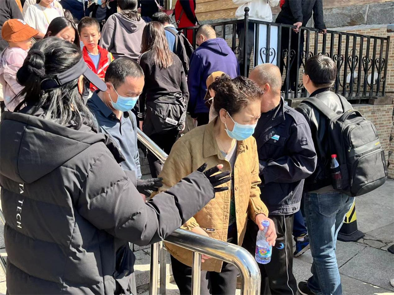 出來玩難免有找不到路和旅游咨詢的情況,營銷運營黨支部織密“服務(wù)網(wǎng)”深化黨建+旅游模式,強化黨員先鋒作用。設(shè)置了黨員服務(wù)崗,主要在景區(qū)各景點、人流量較大的景區(qū)出入口、乘車站點、道路交叉口、售票處等路段、為游客出行帶來貼心的服務(wù)和幫助?,F(xiàn)場,黨員一方面指引游客游園,一方面提供旅游咨詢。紅馬甲和文明旅游標識在景區(qū)中分外耀眼。