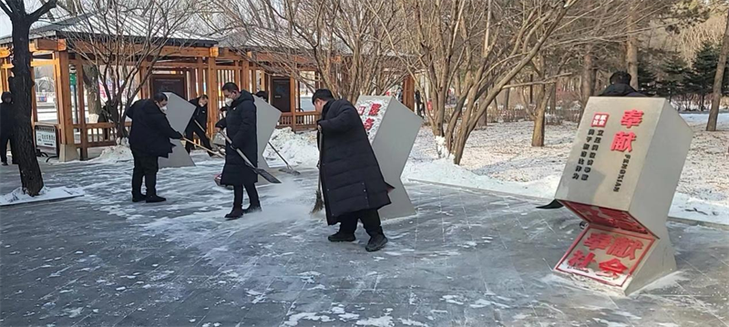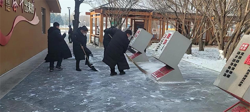 在支部書(shū)記的帶領(lǐng)下,大家拿著鐵鍬、掃帚,對(duì)路面進(jìn)行清掃,彎腰俯身的身影在景區(qū)內(nèi)形成一片風(fēng)景,雖然天氣很冷,但大家熱情似火,干勁十足,以勞動(dòng)為榮,樂(lè)在其中,按照各自的分工,團(tuán)結(jié)合作,對(duì)觀光車售票處及乘車站周邊、進(jìn)行了徹底清理。