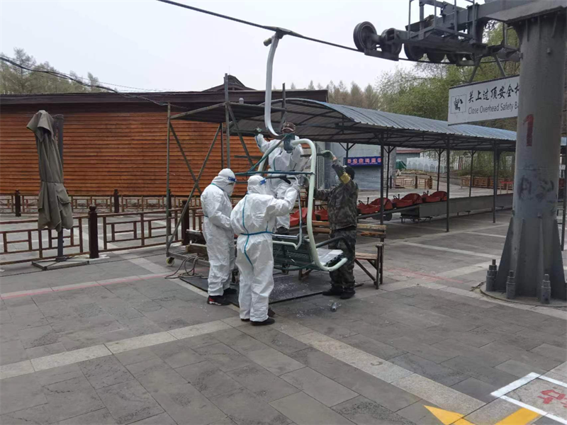 2023年5月15日,為充分展示“一群人、一條心、一起拼、一定成”“四個一”行動,游樂公司組織黨員噴涂吊椅新油漆。