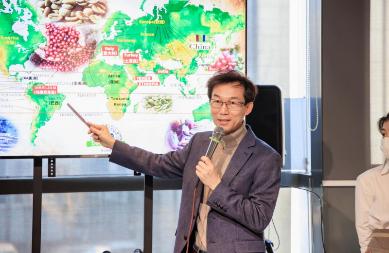 隨后,活動(dòng)特別邀請(qǐng)德音咖啡的總經(jīng)理、亞洲咖啡聯(lián)盟——長(zhǎng)春支會(huì)長(zhǎng)、2020年長(zhǎng)春市政府頒發(fā)的“長(zhǎng)春友誼獎(jiǎng)”獲得者——來(lái)自韓國(guó)的禹慶濟(jì)先生和他的團(tuán)隊(duì),為大家?guī)?lái)一場(chǎng)小型精品咖啡品鑒會(huì),隨著一杯杯醇香的手沖咖啡分發(fā)到每個(gè)人的手中,大家也通過(guò)禹慶濟(jì)先生的講解,了解到每款咖啡的特點(diǎn),咖啡的起源及發(fā)展歷程。