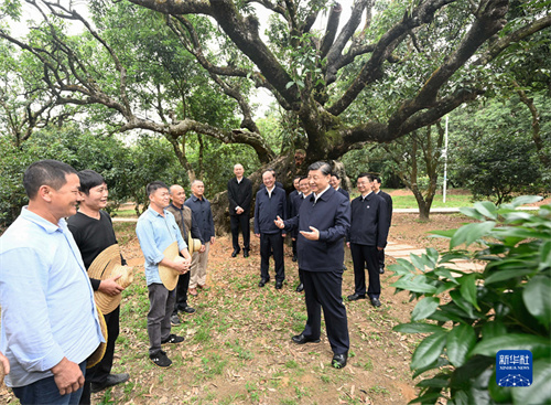 4月10日至13日,中共中央總書記、國家主席、中央軍委主席習(xí)近平在廣東考察。這是11日下午,習(xí)近平在茂名高州市根子鎮(zhèn)柏橋龍眼荔枝專業(yè)合作社考察。新華社記者 李學(xué)仁 攝