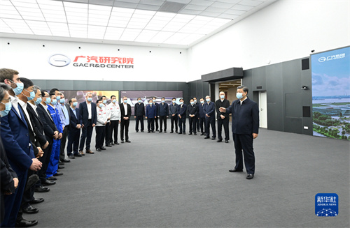 習(xí)近平隨后來到廣汽埃安新能源汽車股份有限公司考察。他走進企業(yè)展廳、總裝車間、電池生產(chǎn)車間等,了解企業(yè)突破關(guān)鍵核心技術(shù)和推動制造業(yè)高端化、智能化、綠色化等進展情況。在廣汽研究院,習(xí)近平仔細察看智能網(wǎng)聯(lián)實驗室、模型設(shè)計實驗室等,并同科技人員、企業(yè)家、職工、外資企業(yè)代表等交流。習(xí)近平指出,中國改革開放政策將長久不變,永遠不會自己關(guān)上開放的大門。一切愿意與我們合作共贏的國家,我們都愿意與他們相向而行,推動世界經(jīng)濟共同繁榮發(fā)展。習(xí)近平強調(diào),中國是個大國,要重視實體經(jīng)濟,走自力更生之路。關(guān)鍵核心技術(shù)要立足自主研發(fā),也歡迎國際合作。要加強教育和人才培養(yǎng),夯實科技自立自強根基。