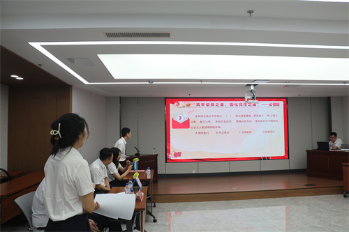第三個環(huán)節(jié)——搶答題,將活動推向了高潮。選手們反應(yīng)迅速,搶答成功后,對題目對答如流,贏得了現(xiàn)場觀眾的陣陣掌聲。搶答題環(huán)節(jié)不僅考驗(yàn)了黨員們的知識儲備,還鍛煉了他們的反應(yīng)能力和團(tuán)隊協(xié)作能力,黨員們更加堅定了黨性之魂。