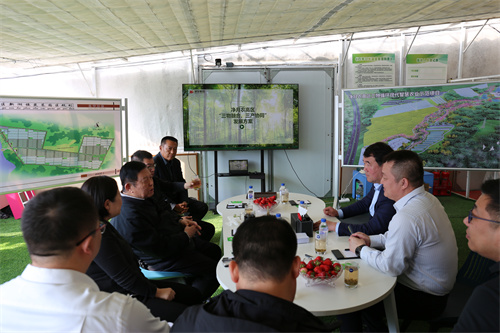 王志權(quán)總經(jīng)理介紹了凈月農(nóng)高區(qū)“三物循環(huán)”現(xiàn)代智慧農(nóng)業(yè)示范園的總體規(guī)劃、先行先試綠色低碳節(jié)能溫室的測試成果,匯報了與吉林農(nóng)業(yè)大學(xué)共同研發(fā)的“新型菌物包裝材料”項(xiàng)目的進(jìn)展情況。據(jù)了解,示范園區(qū)總體規(guī)劃以習(xí)近平總書記提出的“發(fā)展現(xiàn)代化大農(nóng)業(yè)”為目標(biāo),以“構(gòu)建多元化食物供給體系”為抓手,以“植物、動物、菌物”循環(huán)為經(jīng)營模式,籌劃建設(shè)“三物循環(huán)”科普中心、林下經(jīng)濟(jì)示范區(qū)、現(xiàn)代農(nóng)業(yè)設(shè)施、食藥用菌深加工等項(xiàng)目,已建成綠色低碳節(jié)能溫室,通過云數(shù)據(jù)平臺遠(yuǎn)程監(jiān)控,按作物生長需求指標(biāo)智能調(diào)控溫度、濕度、光照、通風(fēng)、施肥、防蟲、防病等生產(chǎn)要素,可實(shí)現(xiàn)連續(xù)-25℃左右極端天氣的情況下無需供暖,保證棚溫維持15.8℃左右、地溫16.8℃左右,真正實(shí)現(xiàn)了農(nóng)業(yè)的數(shù)智化、綠色低碳化;“新型菌物包裝材料”項(xiàng)目已完成實(shí)驗(yàn)室草莓包裝材料批量生產(chǎn),入選長春市科技局“長春市高校院所中試遴選項(xiàng)目”,正在籌備中試,同時進(jìn)入東北“三省一區(qū)”國有企業(yè)“星火”創(chuàng)新創(chuàng)意大賽(吉林賽區(qū))決賽,正在與吉林省農(nóng)業(yè)信息與技術(shù)服務(wù)協(xié)會與省內(nèi)龍頭企業(yè)進(jìn)行產(chǎn)品需求及購買意向洽談工作。