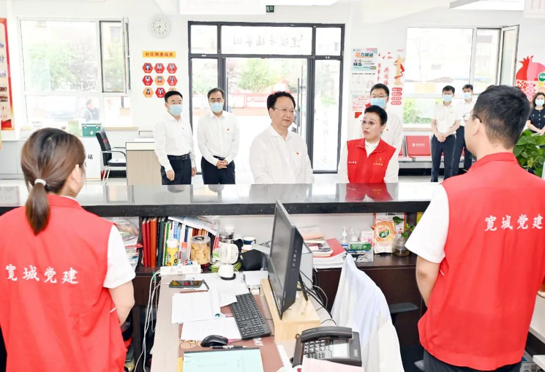 7月10日,省委書記景俊海到長(zhǎng)春市寬城區(qū)長(zhǎng)山花園社區(qū)調(diào)研,與社區(qū)工作人員親切交流,實(shí)地察看便民服務(wù)開展情況。