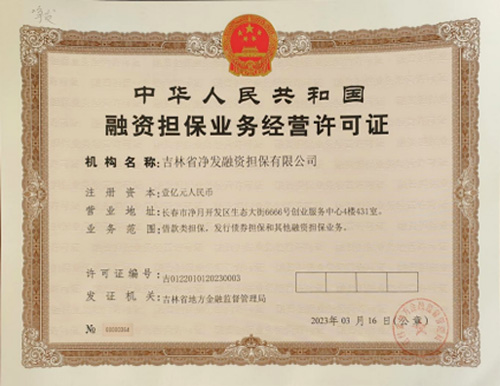 吉林省凈發(fā)融資擔(dān)保有限公司融資擔(dān)保業(yè)務(wù)經(jīng)營許可證